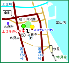| ● | アクセス : 【車】能越道・氷見ICから国道415号を東に2.7km、「中央町」を右折し国道415号を800m、「市民会館前」を右折し400m。駐車場あり。 | |