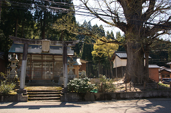 瀬戸神社の祭神は、白山神社と同じ菊理媛神(くくりひめのかみ)、伊弉諾神、伊弉冉神で、文禄4年(1595年)の創立と伝えます。神社は国道沿いにあり、このイチョウも車窓からはっきりと見えます。