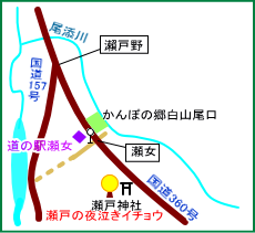 アクセス : 北陸鉄道石川線・鶴来駅で下車。北陸鉄道バス「瀬女行き」にて終点の「瀬女」で下車し、南東に約500m。 【車】白山市から国道157号「瀬戸野」交差点を左折し国道360号を南東に1.7km。 |