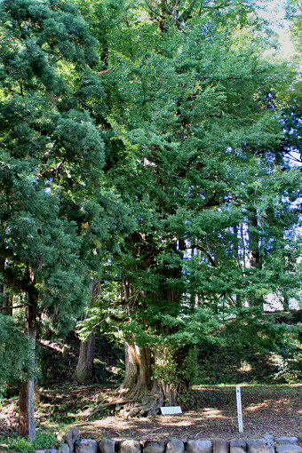 一つの境内に白山神社と薬師神社の二つの社殿が左右に少し離れて並んでいます。かって薬師堂があり、このお堂を建立した別当円長坊がこの木を植えたといわれているため、樹齢は約500年といわれています。