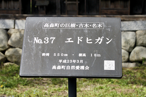| ●高森町自然愛護会が立てた標識では、幹周/5. 50m、樹高/18m。 | |