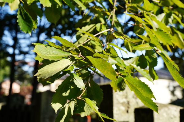 | ●コナラの葉。葉の縁はギザギザの鋸歯をもちます。ミズナラとの差異は葉柄が長いこと。 | |