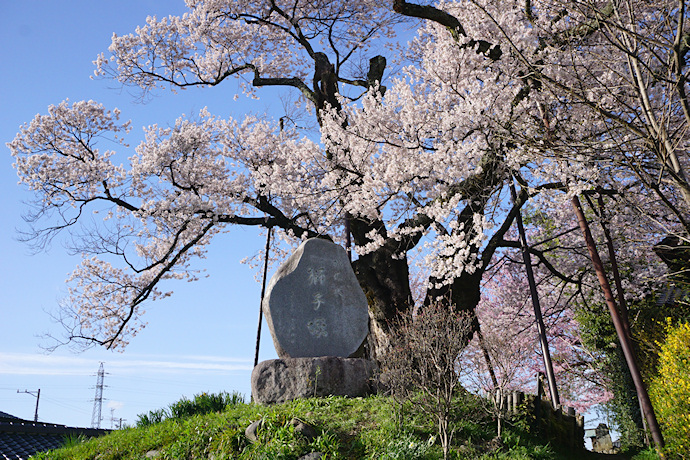 | ● | 水城コミュニティ消防センターから北を見ると小高い丘の上に桜が見えます。丘は古代の前方後円墳で、その前方部の墳丘上に大きなエドヒガンが咲いています。天竜川に近く標高も低いことから、飯田市中では最も早く開花する桜だそうで、ちょうど満開でした。 遙か昔、この地区に住んでいた人々が、塚(古墳)に祀られた霊を慰めようと桜を植えたといわれています。 また、いつの時代からか津島神社の護符を納める鞘(お立ち符)が立てられるようになったことから、「お立ち符の桜」の名がついたそうです。 獅子塚古墳はこの地区の古代豪族の首長のものと思われ、6世紀前半の築造と推定されています。この獅子塚古墳を含む13基の飯田市内の古墳が、平成28年10月3日に「飯田古墳群」として国指定史跡となりました。 古代史ファン(特に古墳)としてはサクラも大事ですが、古墳はもっと大事にして欲しいので、この指定は喜ぶべきものです。私の住む大阪市阿倍野区のすぐ南の堺市には百舌鳥古墳群という巨大古墳群があり、20年ほど前に全部の古墳を巡ったことがありました。 (HP管理者) |