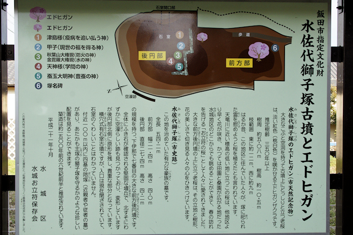 | ●水佐代獅子塚古墳とエドヒガン説明板(上下とも) | |