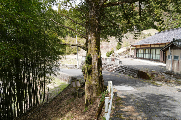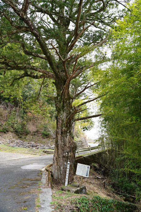 | ●カヤの木は、道路から少し下がったところにあります。 | |