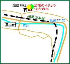 | ● | 名称 : 加茂のイチョウ・カヤの木 | |
