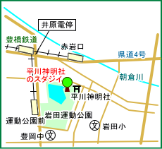 | ● | アクセス : 豊橋鉄道・運動公園前駅から東に500m。 【車】国道1号「伝馬町」を東に1.7km、左折し北に500m。岩田運動公園駐車場に駐めました。 | |