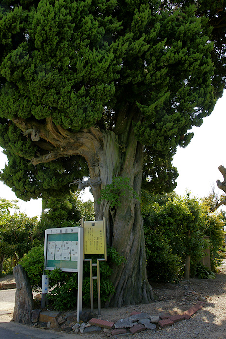 | ● | 慶昌寺は真宗大谷派の寺院。西三河では最大級のイブキの巨樹とのこと。お寺の入口に道路に面して生育しており、結構イブキらしいねじれと枝振りをしています。 (HP管理者) |