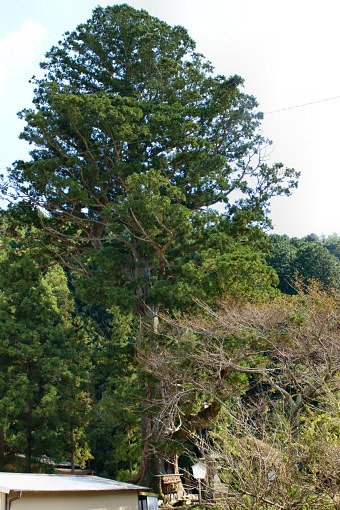 | ●現地説明板では、幹周/6. 5m、根周り/30m、樹高/35m、樹齢/800年(推定)。 |