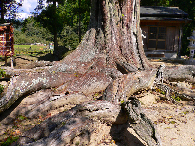| ●別名「根上がりの杉」とも呼ばれているように、本当に大蛇のように根っ子がうねっています。 |