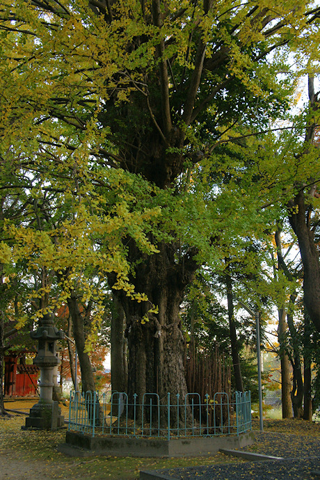 イチョウは拝殿前にあり、根元には多数のひこばえが出ていました。余り大きなイチョウではありませんが、頑丈な鉄製の柵がイチョウの周りを巡っており、大事にされているようです。