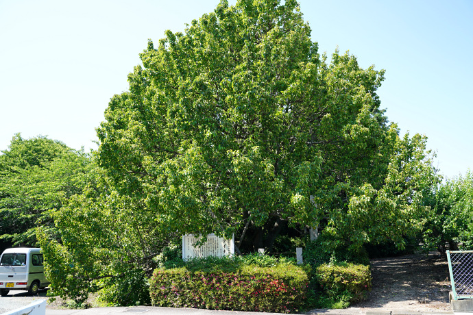| ●県天然記念物の説明板によれば、5本の株立ちで、主幹は樹高8m。 | |