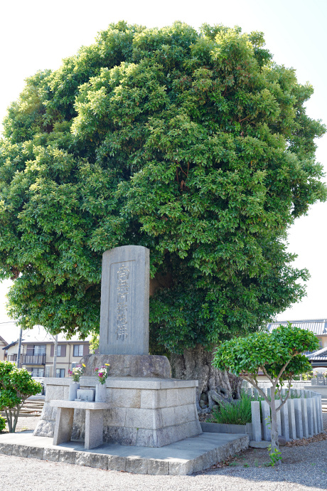 | ● | 環境省巨樹巨木林DBには木の種類が「ヤチダモ」とありますが、ヤチダモは、北海道と本州北部に自生する雌雄異株のモクセイ科トネリコ属の落葉高木で、三重県あたりには自生しない種類です。堅くて加工性の良い材は、「タモ」とよばれて、野球のバットなどに使われます。「タモ」はタブノキの別名でもありますから間違ったのだと思います。 説明板には 「椨の木(たぶのき)、犬楠(いぬくす)とも言う、楠(くすのき)科たぶのき属。むかし、この木は霊が宿る木とされた事から霊(たま)の木と呼ばれて居たが、、変化して“たぶの木”となったとの事。たぶの木の樹皮からは線香が作られていた。よく似た名前で「たもの木」と呼ばれる木があるが、これは楡の木(にれのき)の別名で落葉樹である。」 とあります。 周囲を石柵で囲まれており、「南無阿弥陀仏」の石碑と「倶會一處(倶会一処:くえいっしょ)」と彫られた石碑が建てられています。「倶会一処」という言葉は、『仏説阿弥陀経』に出てくる言葉で、仏説阿弥陀経は浄土宗・浄土真宗など、浄土教の根本聖典の一つです。 「倶会一処」は「倶に一つの処で会う」と書き下します。倶(とも)に一つの処(ところ)で会うということで、お墓に入った人に「現世ではもう会えないけど来世に極楽浄土でまた会いましょう」という願いをこめて墓石に刻まれる事が多いようです。 近くには「寿福院のタブノキ」や「飯野神社のクス」があります。 (HP管理者) |