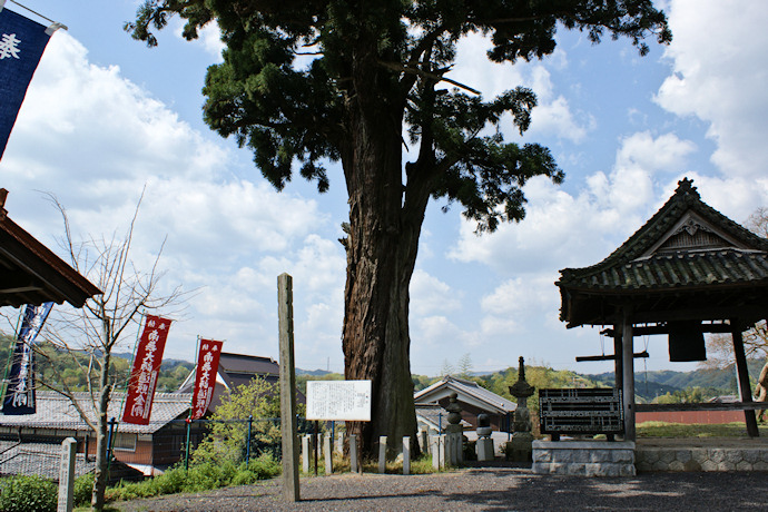 | ●本堂の前にそびえるは八幡杉。かっては鎮守八幡社があった名残です。 | |