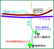 | (河内八幡神社のカツラ・ケヤキ) | (八幡神社の杉並木) | |