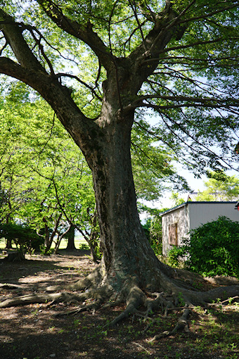 | ●【宮部神社のケヤキ・2】 神社の鳥居を入った右手にあるケヤキの巨樹で、 幹周実測値/5. 33m。 | |