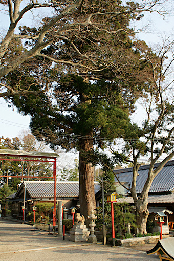| ●神社の社務所の前にすっくと伸びています。非常にスマートな大杉です。 | |