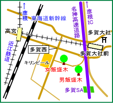 | ● | 女飯盛木の所在地 : 滋賀県犬上郡多賀町多賀924 男飯盛木の所在地 : 〃 864 |