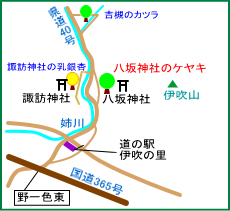 | ● | 伊吹山の西山麓に板並の集落があります。以前吉槻のカツラを訪問した際に見落としてしまった「八坂神社のケヤキ」を訪問しました。ついでに「諏訪神社の乳イチョウ」もと思っていたのですが、天川命神社のイチョウを見にいく時間がなくなるので断念しました。 八坂神社ですから祭神は素盞鳴命(すさのおのみこと)です。神社の創建は不明ですが、江戸時代までは牛頭天王(ごずてんのう)と呼ばれていたとの事。神仏習合の祇園信仰を示すようにケヤキの根元には多くのお地蔵様が並べられていました。 2015年に姉川を挟んだ対岸にある「諏訪神社の乳銀杏」を訪問しました。 (HP管理者) |