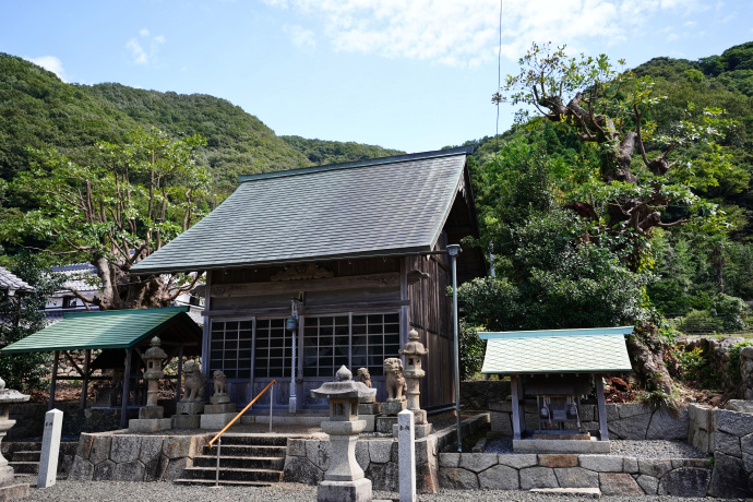 | ●天満宮本殿の両側にタブノキの古木があります。 | |