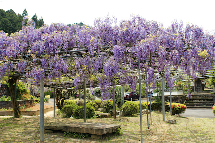 | ●「才ノ神のフジ」への道路の途中にある普門寺の野田藤。 | |