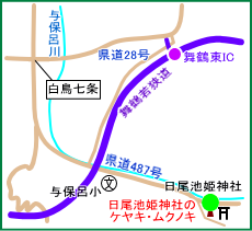 | ● | アクセス : 【車】舞鶴若狭道・舞鶴東ICから東に100mで右折し舞鶴若狭道に沿った道路を1.8km、三叉路を左折し県道487号を1.6km。県道沿いに神社があり、駐車スペースがあります。 | |