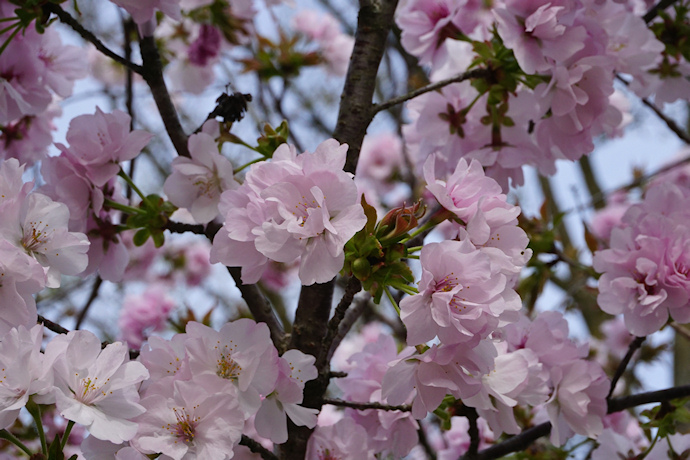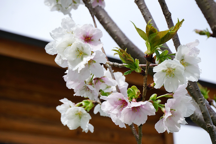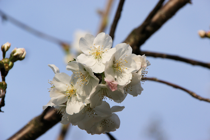 | ●【松前早咲】(まつまえはやざき) 北海道松前町の光善寺に原木があり「血脈桜」とも呼ばれます。小花柄やがく筒にまばらに毛がああることや丸く大きな花弁などから’高砂’と近縁と考えられます。 | |