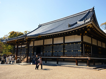 | ●仁王門(重文)。江戸時代初期に建造されたもの。 | ●仁和寺金堂(国宝)。桃山時代に建てられた京都御所の紫宸殿を江戸時代初期に移築したもの。 |
