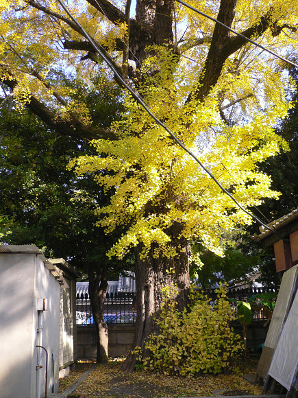 | ●西本願寺の傍にある龍谷大学大宮学舎のイチョウ。京都市「区民誇りの木」のHPでは、幹周/3. 95m、樹高/25. 5m。 |