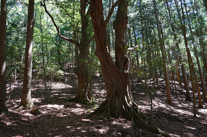 | ●樹肌も赤くみえますね。左の小ぶりのアカガシも府の天然記念物に指定されています |