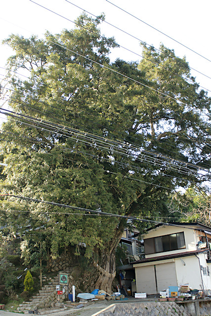 | ●環境省巨樹巨木林DBによれば、幹周/5. 50m、樹高/20m、樹齢/推定5〜600年。 |