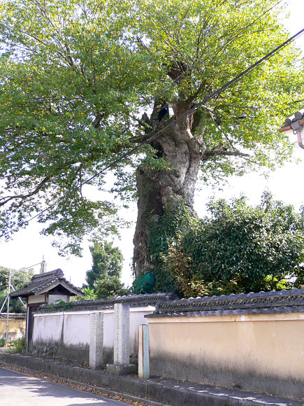 | ●低い土壁の向こうに椋の巨樹があります。旧紀州街道にも近く、旧家も残っています。 |
