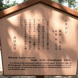 名称 : 春日大社参道のムクロジ、東大寺大湯屋のアカメヤナギ |