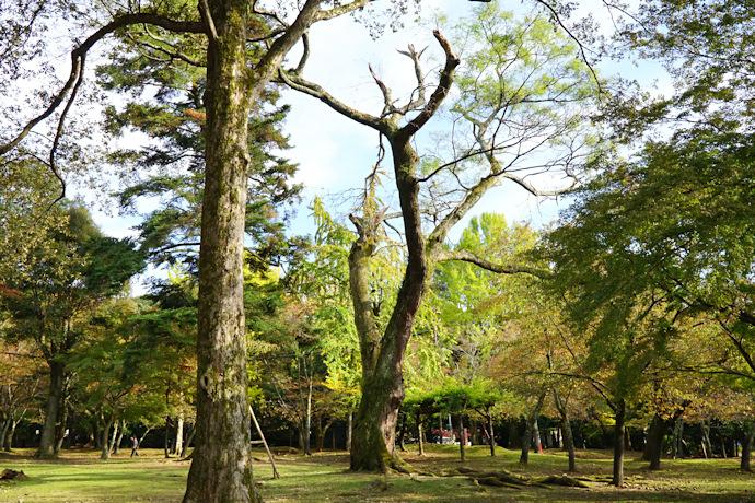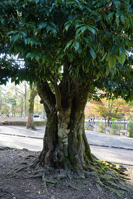 | ● | この日は奈良国立博物館で開かれている正倉院展を見るためにヨメさんと一緒に奈良公園を訪問しました。奈良公園は巨樹の宝庫で、何回か紹介していますが、東大寺の周辺だけでも「知足院の奈良八重桜」、「大湯屋のアカメヤナギ」、「氷室神社の枝垂れ桜」があります。今回も少しだけ時間をもらって巨樹を撮影しました。 大仏殿への参道左側にあるアカメヤナギは市の保存樹に指定されていますが、主幹を失っていました。参道を北に行くと運慶・快慶作の仁王像で有名な南大門があり、門を入ると右手にある鏡池のそばにアラカシの巨樹があります。 アラカシから東に手向山八幡宮の方向に進むと、発掘調査が行われている七重塔跡のすぐそばにセンダンの巨樹がありました。 もっとゆっくりと奈良公園を散策したかったのですが、正倉院展を見ないといけないのでやむなく国立博物館に向かいました。もう正倉院展に行くのは何度目になるでしょうか。10回以上になることは確かです。しかし1300年前の宝物がよく残っていたものですね。それも後世に残すつもりで大切に保管していたのですからすごいことです。 帰りに近鉄奈良駅前の和食「月日亭」でおいしい夕食を食べて帰りました。ヨメさんはどうも巨樹や宝物よりもこの和食の方に満足したようです。 (HP管理者) |