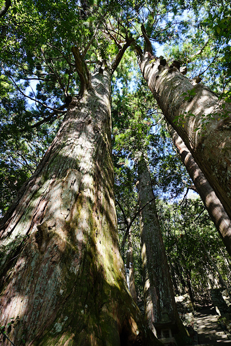 | ●石段の左横にあるスギの巨樹。 | |