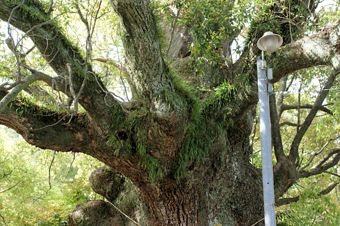 | ●古木らしく着生植物がいっぱい見られます。葉には歯痛に効能があるという説明がありました。 |