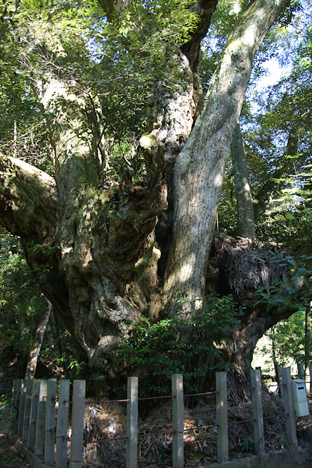 1988年に行われた環境省の巨樹巨木林調査で、シイの部全国一位に鳥取県の「伯耆の大シイ」と共に選ばれました。ところが、21世紀に入ると、東京都御蔵島や京都府舞鶴市でこの志多備神社のスダジイを超える幹周のスダジイが見つかっていますが、いずれも株立ち・根上がりということからすれば、やはりこの志多備神社のスダジイが日本一のシイノキと思われます。