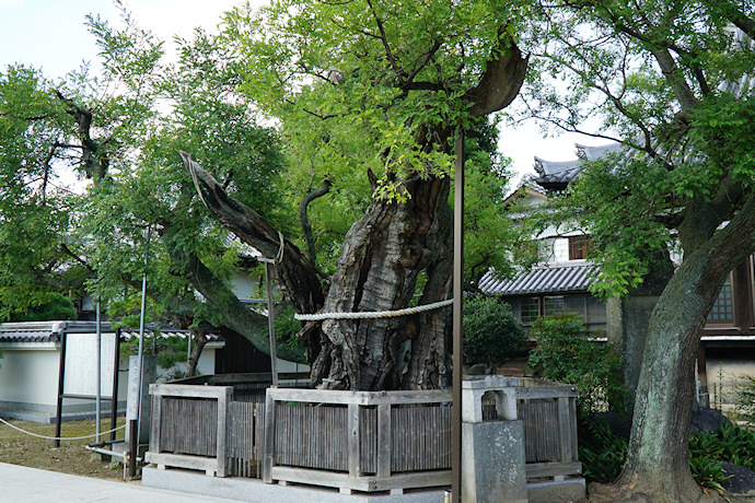 | ● | 松寿寺は、岡山市内旭川の右岸堤防沿いにある日蓮宗本興寺派の名刹です。南北朝時代の興国2年(1341年)に、この地で討ち死にした南朝方の武将多田頼定の霊を弔うため、その嫡子能勢太郎頼仲の発願により創建された法華宗の寺院で、大覚大僧正を開祖とします。本堂、宮殿、鬼子母神堂などの建物が整然と並んでおり、宇喜多氏の保護を得て繁栄ししました。 「鬼子母神のエンジュ(槐)」は本堂前にあり、いまは幹が二つに分かれ空洞が生じていますが、このエンジュには鬼子母神伝説が伝えられています。 寺伝によると、延享元年(1744年)、かって住職の夢に現れた鬼子母神が、エンジュの空洞から光明を放って鬼子母神像として現れたことから、訪れる人にご利益(子ども)を授けるといいます。 エンジュはマメ亜科エンジュ属の落葉高木。環境省巨樹巨木林DBには全国でも29本が報告されているだけで、巨樹は珍しいようです。中国が原産地で、古い時代に日本にもたらされました。 (HP管理者) |