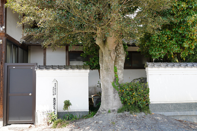 | ● | 真光寺は真言宗御室派の寺院です。「ふるさとづくりポータルサイト」によれば、本樹は本堂東側の中庭に植えられたもので、目通り周囲約2.0m、樹高約19mを測ります。推定樹齢は約400年です。 モッコク(木斛)は、ツバキ科モッコク属の常緑樹で、関東南部より西の温暖な地域に生育します。花の香りが石斛(セッコク=蘭の一種)に似た木という意味で、江戸初期に木斛(モッコク)と命名されたそうです。 日本一のモッコクは三重県鈴鹿市の「中山寺のモッコク」ですが、それでも幹周は3.84mしかありません。成長の遅い樹木なんですね。 (HP管理者) |