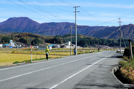 ●実相寺入口付近の県道を走る「比婆いざなみ街道マラニック」のランナー。60キロコースのランナーです。 |