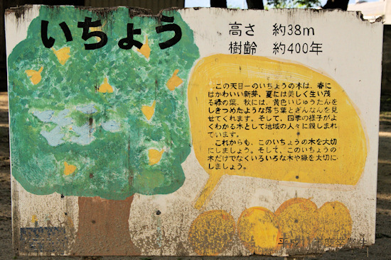 | ●【イチョウ】 環境省巨樹巨木林DBによれば、幹周/4. 43m、樹高/22m。 幹周実測値/4. 46m。 |