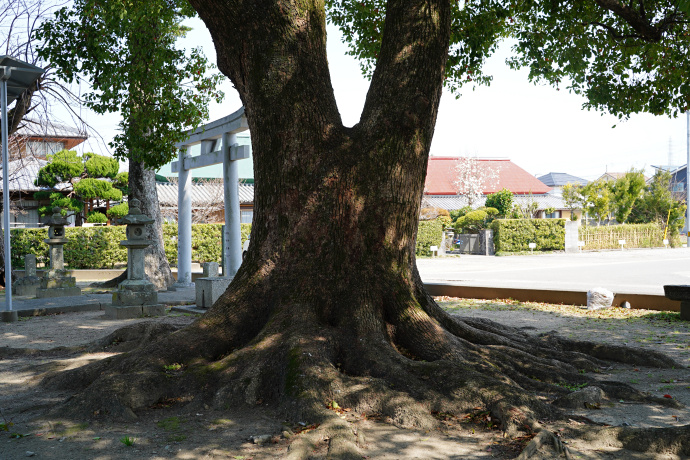 | ●本殿右奥のクスノキで、環境省巨樹巨木林DBには登録なし。 幹周実測値/6. 90m、樹高/約15m。 | |