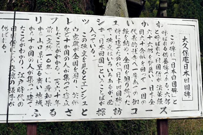| ●ムクノキの前には「日本回国碑」石碑と「大久保庵日本国回国碑」の説明板があります。 | |