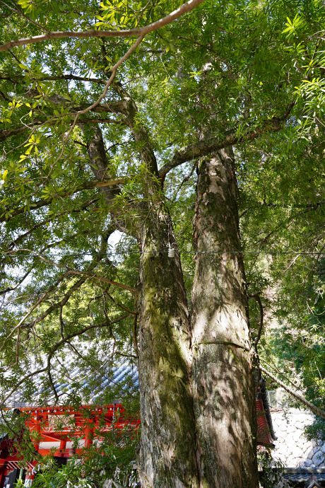 さてイヌマキの方ですが、拝殿前に2本あり、市の天然記念物に指定されている方が大分太いようです。それでも幹周3m足らずですが、このあたりでは珍しいからでしょうか天然記念物に指定されています。