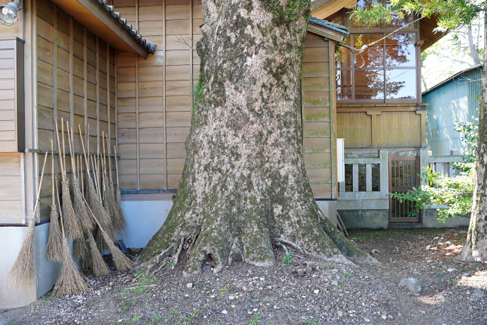 | ●【クスノキ】 拝殿の奥にありあまり目立たないのですが、これでも幹周は5mを超えます。 |