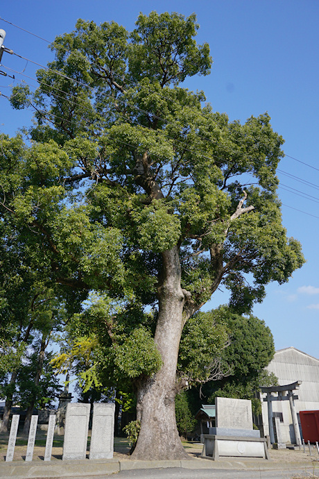 | ●八幡神社の鳥居の南側にあるよく目立つクスノキで、幹周実測値/4. 85m、境内では2番目の太さでした。 | |