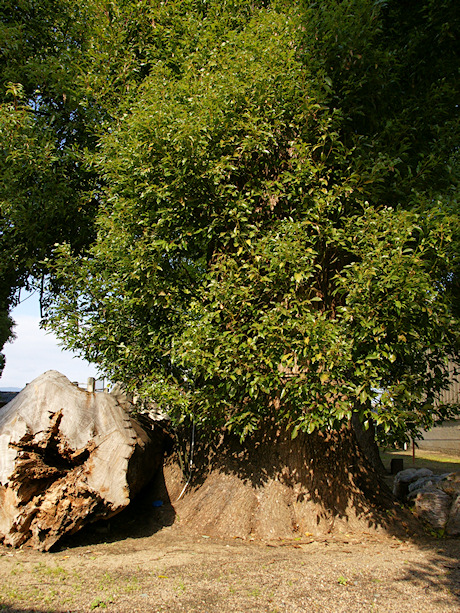 | ●八幡神社では最大の幹周のクスノキで、幹周実測値/5.17m。ただ双幹の幹の半分は切られています。 | |