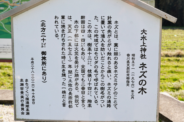 | ●ネズの木は大水上神社の御旅所にあり、県の自然記念物に指定されています。天然記念物ではありません。 | |