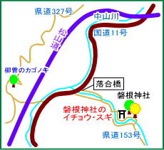 | ● | アクセス : 【車】松山道・いよ小松ICから国道11号を西に9.3km、県道327号の案内板のある交差点を右折し4.2km、「落合橋」を左折し県道153号に入り1kmで左折、橋を渡り500mで神社前に、さらに50mほど先に駐車スペース。 | |