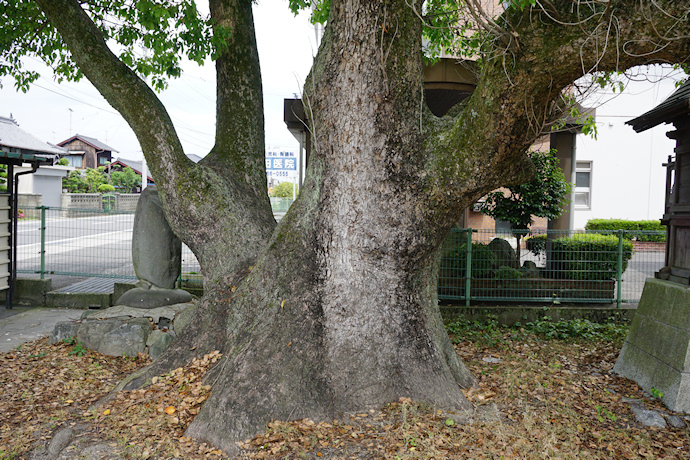 | ● | 西条市のHPサイト「西条の巨樹」に、「さやの神社のクスノキ」とありましたのでその名称にしました。現地説明板では「さえの神さん」となっていますが、賽の神を「さい・さえ・さや」ともよびます。賽の神は村境で悪鬼(悪者や疫病を)遮ってくれる神様で、日本古来からあり、道祖神も同じ神様とされます。 また子孫繁栄を願う縁結びや夫婦和合の神として、さらに近世では旅や交通安全の神として広く信仰されてきました。 県道154号沿いにある茎田医院の西隣に大楠はあります。さえの神さんの小さな祠があり、周囲には中村城跡の石碑と説明板がありました。このクスノキは樹齢500年を超え、子供が木登りしたり、おとなが涼んだりする、やすらぎの場となっているそうです。 クスノキはちょうど地上1.3m付近で2幹に分かれており、一つの幹として幹周を測定すると6.76m、双幹として測定すると4.68mと3.29m(合計すると7.97m)でした。普通に見る分には6.76m位ですね。樹高も幹周に比べて低く、15m足らずで、主幹が損傷しているわけでもないのどうしてですかね。 近くには「宮内神社のクスノキ」があります。 (HP管理者) |